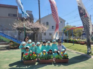 今日はこいのぼり掲揚式を行いました。 イルカ、パンダ、キリン組のお友達が「こいのぼり」の歌を歌ってくれ、 ライオン組のお友達が代表してこいのぼりを揚げました☆ 上まで上がるとみんなでぱちぱち拍手をして 嬉しそうにしていました♪ Share this post Share on FacebookShare on Facebook Share on XShare on X Post navigationPreviousPrevious post:4月9日(火)NextNext post:4月11日(木)関連記事12月12日(金)2025年12月12日12月11日(木)2025年12月11日12月10日(水)2025年12月10日12月9日(火)2025年12月9日12月6日(土)2025年12月6日12月4日(木)2025年12月4日