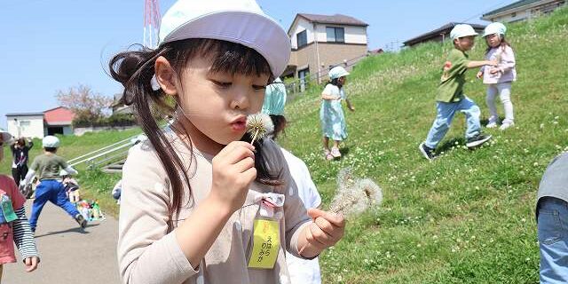 キリン組のお友達はたんぽぽの綿毛を沢山集めて「ふーっ」と息を吹きかけていました。
