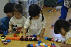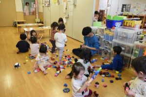 先生の組み立て方を真似っこしたり、お友達と一緒に作ったりしながら