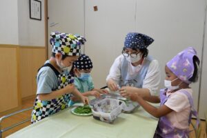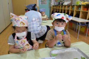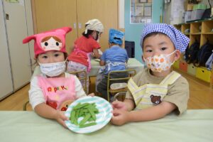 パンダ組のお友達は食育活動できぬさやの筋とりを行いました!