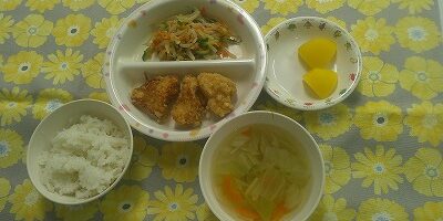 ~今日のお給食~ ・鶏のから揚げ ・もやしの中華風和え物 ・ごはん ・コンソメスープ(にんじん・えのきたけ・キャベツ) ・モモ ~今日のおやつ~ ・お麩ラスク ・牛乳 Share this post Share on FacebookShare on Facebook Share on XShare on X Post navigationPreviousPrevious post:5月18日(土)NextNext post:5月20日(月)関連記事12月4日2025年12月4日11月28日2025年11月28日11月27日2025年11月27日11月26日2025年11月26日11月25日2025年11月25日11月21日2025年11月21日