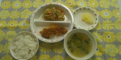 ~今日のお給食~ ・ササミチーズフライ ・大根サラダ ・ごはん ・味噌汁(だいこん・小松菜・にんじん) ・パイン ~今日のおやつ~ ・フルーツポンチ ・牛乳 Share this post Share on FacebookShare on Facebook Share on XShare on X Post navigationPreviousPrevious post:5月27日(月)NextNext post:5月28日(火)関連記事12月4日2025年12月4日11月28日2025年11月28日11月27日2025年11月27日11月26日2025年11月26日11月25日2025年11月25日11月21日2025年11月21日