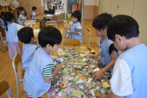 最近ライオン組のお友達の中でポケモンカードが人気なので