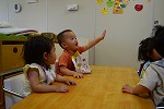 おやつの準備を待っている間は、先生が絵本を読んでくれ