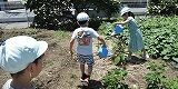今日はライオン組のお友達が畑で育てている、夏野菜のお世話をしました。