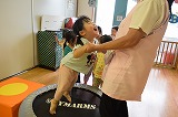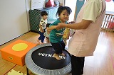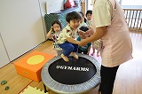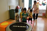 今日、イルカ組のお友達は、室内でトランポリンで遊びました。