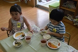 お給食は姿勢に気を付けながら食べています。
