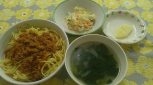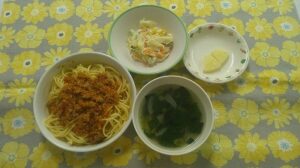 ~今日のお給食~ ・ミートソーススパゲティ ・コールスローサラダ ・コンソメスープ(たまねぎ・小松菜・コーン) ・パイン ~今日のおやつ~ ・ホットケーキ ・牛乳 Share this post Share on FacebookShare on Facebook Share on XShare on X Post navigationPreviousPrevious post:7月2日(火)NextNext post:7月3日関連記事12月9日2025年12月9日12月5日2025年12月5日12月4日2025年12月4日11月28日2025年11月28日11月27日2025年11月27日11月26日2025年11月26日