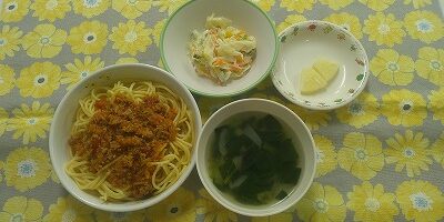 ~今日のお給食~ ・ミートソーススパゲティ ・コールスローサラダ ・コンソメスープ(たまねぎ・小松菜・コーン) ・パイン ~今日のおやつ~ ・ホットケーキ ・牛乳 Share this post Share on FacebookShare on Facebook Share on XShare on X Post navigationPreviousPrevious post:7月2日(火)NextNext post:7月3日関連記事12月4日2025年12月4日11月28日2025年11月28日11月27日2025年11月27日11月26日2025年11月26日11月25日2025年11月25日11月21日2025年11月21日