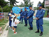 ライオン組のお友達が代表して消防車と救急車の絵を描いてくれ