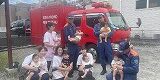 ライオン組のお友達が代表して消防車と救急車の絵を描いてくれ