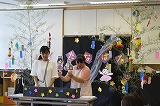 玄関に飾ってある大きな笹にみんなで飾りつけをしました!