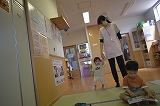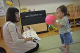 今日はラッコ組のお友達がベランダで水遊びを行いました。