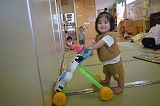 つかまり立ちも上手できるようになってニコニコ笑顔です。