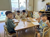 みんなで「どの色にする?」と会話を楽しみながら色塗りをしました。