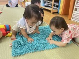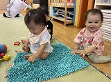 お洗濯を畳んでいる先生の側に行き、むにょむにょマットの感触を楽しんだりしていました。