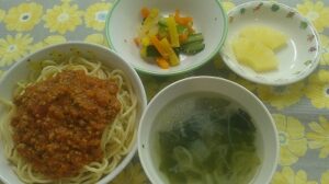 ~今日のお給食~ ・ミートソーススパゲティ ・カミカミ和え ・中華スープ(ねぎ・わかめ・はるさめ) ・パイン ~今日のおやつ~ ・メロンパンクッキー ・牛乳 Share this post Share on FacebookShare on Facebook Share on XShare on X Post navigationPreviousPrevious post:8月9日(金)NextNext post:8月13日関連記事12月9日2025年12月9日12月5日2025年12月5日12月4日2025年12月4日11月28日2025年11月28日11月27日2025年11月27日11月26日2025年11月26日