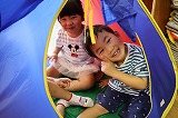 テントに顔を押し当てて変な顔もして楽しんでいました。