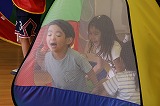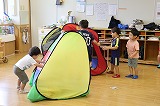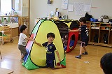 今日は、お部屋の中でテントを出してお家ごっこをしました。