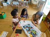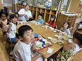 プール遊びの後は、みんなで仲良く給食を食べました。