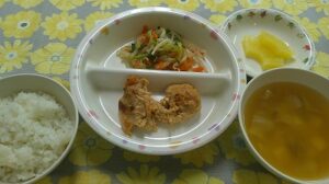 ~今日のお給食~ ・タンドリーチキン ・きゅうりのサラダ ・ごはん ・味噌汁(キャベツ・とうふ・なめこ) ・パイン ~今日のおやつ~ Share this post Share on FacebookShare on Facebook Share on XShare on X Post navigationPreviousPrevious post:10月4日NextNext post:10月7日(月)関連記事12月9日2025年12月9日12月5日2025年12月5日12月4日2025年12月4日11月28日2025年11月28日11月27日2025年11月27日11月26日2025年11月26日