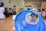 今日ペンギン組のお友達は室内でトンネルや平均台を渡ったりしました★