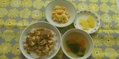 ~今日のお給食~ ・マーボー豆腐丼 ・鶏ささみのカレー風味サラダ ・春雨スープ ・パイン ~今日のおやつ~ ・スイートポテトトースト ・牛乳 Share this post Share on FacebookShare on Facebook Share on XShare on X Post navigationPreviousPrevious post:10月21日(月)NextNext post:10月22日(火)関連記事12月4日2025年12月4日11月28日2025年11月28日11月27日2025年11月27日11月26日2025年11月26日11月25日2025年11月25日11月21日2025年11月21日