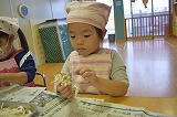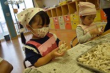 今日は、イルカ組さんで食育活動として「きのこ割き」をしました。