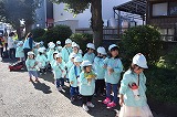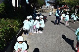 幼稚部のお兄さん、お姉さんと手をつなぎ、