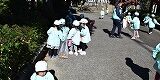 幼稚部のお兄さん、お姉さんと手をつなぎ、