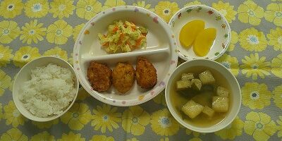 ~今日のお給食~ ・ツナと豆腐の落とし揚げ ・鶏ささみのカレー風味サラダ ・ごはん ・味噌汁(油揚げ・もやし・わかめ) ・りんご ~今日のおやつ~ ・大学芋 ・牛乳 Share this post Share on FacebookShare on Facebook Share on XShare on X Post navigationPreviousPrevious post:12月9日(月)NextNext post:12月10日(火)関連記事12月4日2025年12月4日11月28日2025年11月28日11月27日2025年11月27日11月26日2025年11月26日11月25日2025年11月25日11月21日2025年11月21日