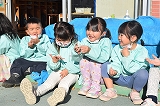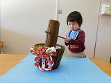 保育部のお友達はお部屋で、手作り餅つきセットを使ってお餅つきごっこを楽しみました。