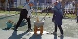 イルカ組さんからライオン組さんまでは一人ずつ、自分の年の数だけお餅つきをします。