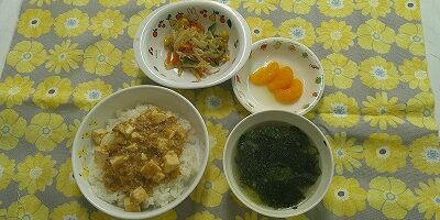~今日のお給食~ ・マーボー豆腐丼 ・もやしの中華サラダ ・ごはん ・中華スープ(えのきたけ・わかめ・ねぎ) ・みかん ~今日のおやつ~ ・おせんべい ・ビスケット ・牛乳 Share this post Share on FacebookShare on Facebook Share on XShare on X Post navigationPreviousPrevious post:12月25日(水)NextNext post:12月26日(木)関連記事12月4日2025年12月4日11月28日2025年11月28日11月27日2025年11月27日11月26日2025年11月26日11月25日2025年11月25日11月21日2025年11月21日