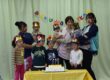 自分たちで作ったお面をかぶり、豆まきの歌を歌ったり、