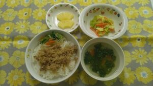 ~今日のお給食~ ・切干大根のビビンバ ・鶏ささみのカレー風味サラダ ・春雨スープ ・パイン ~今日のおやつ~ ・牛乳 ・シュガートースト Share this post Share on FacebookShare on Facebook Share on XShare on X Post navigationPreviousPrevious post:3月17日(月)NextNext post:3月18日(火)関連記事12月9日2025年12月9日12月5日2025年12月5日12月4日2025年12月4日11月28日2025年11月28日11月27日2025年11月27日11月26日2025年11月26日