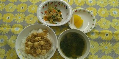 ~今日のお給食~ ・マーボー豆腐丼 ・もやしのナムル ・中華スープ(こまつな・えのきたけ・コーン) ・モモ ~今日のおやつ~ ・牛乳 ・フルーツポンチ Share this post Share on FacebookShare on Facebook Share on XShare on X Post navigationPreviousPrevious post:4月2日(水)NextNext post:4月4日関連記事12月4日2025年12月4日11月28日2025年11月28日11月27日2025年11月27日11月26日2025年11月26日11月25日2025年11月25日11月21日2025年11月21日