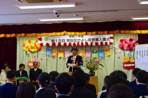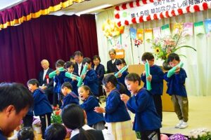 式が始まり、お話を聞いたり歌を歌ったりしました(^_-)-☆