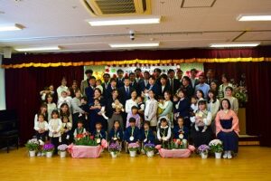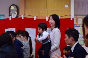 在園児ライオン組からお祝いのメダルを首にかけてもらい、チューリップの鍵盤ハーモニカ演奏もありました!
