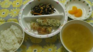 ~今日のお給食~ ・ちくわの磯辺揚げ ・ひじきの炒め煮 ・ごはん ・味噌汁(豆腐・油揚げ・たまねぎ) ・みかん ~今日のおやつ~ ・牛乳 ・ライスクッキー Share this post Share on FacebookShare on Facebook Share on XShare on X Post navigationPreviousPrevious post:4月9日(水)NextNext post:4月10日(木)関連記事12月9日2025年12月9日12月5日2025年12月5日12月4日2025年12月4日11月28日2025年11月28日11月27日2025年11月27日11月26日2025年11月26日