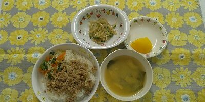 ~今日のお給食~ ・切干大根のビビンバ ・春雨サラダ ・味噌汁(なめこ・わかめ・油揚げ) ・モモ ~今日のおやつ~ ・豆乳 ・バナナきな粉 Share this post Share on FacebookShare on Facebook Share on XShare on X Post navigationPreviousPrevious post:4月11日(金)NextNext post:4月14日(月)関連記事12月4日2025年12月4日11月28日2025年11月28日11月27日2025年11月27日11月26日2025年11月26日11月25日2025年11月25日11月21日2025年11月21日