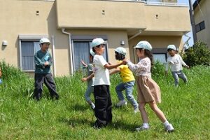 草加なかよし保育園のお友達は、芝生の坂道もたくさん走ることができるので、