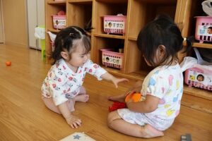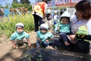 さつまいもの苗に触ると不思議そうに眺めたり、