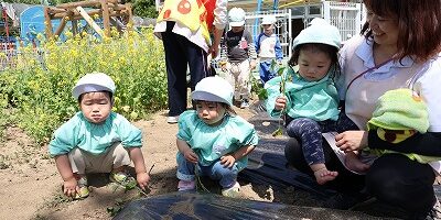 さつまいもの苗に触ると不思議そうに眺めたり、