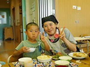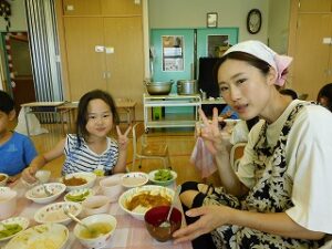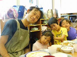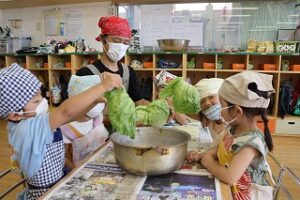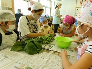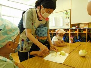 5歳児は、お米を研いだり、包丁で野菜を切ることが出来ました。