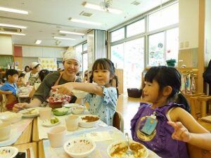お鍋を煮込んで、みんなで美味しくカレーライスを食べました。