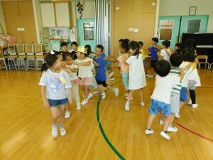 今日のキリン組は、お部屋の中でマーチングの練習をしてからライオン組と一緒に ゲーム「じゃんけん列車」を楽しみました。 美味しいお給食を食べてから、午後は、プールに入りました。 Share this post Share on FacebookShare on Facebook Share on XShare on X Post navigationPreviousPrevious post:7月25日NextNext post:7月26日関連記事12月12日(金)2025年12月12日12月11日(木)2025年12月11日12月10日(水)2025年12月10日12月9日(火)2025年12月9日12月6日(土)2025年12月6日12月4日(木)2025年12月4日