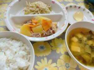 ~今日のお給食~ ・肉じゃが ・キャベツのごまだれサラダ ・ごはん ・味噌汁(小松菜・なめこ・豆腐) ・ミニゼリー ~今日のおやつ~ ・牛乳 ・お麩ラスク Share this post Share on FacebookShare on Facebook Share on XShare on X Post navigationPreviousPrevious post:7月24日NextNext post:7月25日(金)関連記事12月9日2025年12月9日12月5日2025年12月5日12月4日2025年12月4日11月28日2025年11月28日11月27日2025年11月27日11月26日2025年11月26日