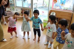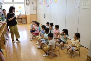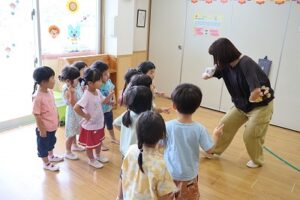 英語の絵本を見たり、歌いながら体を動かしたりと