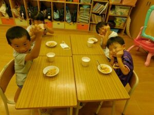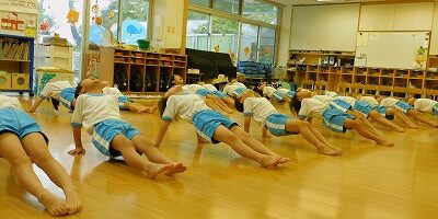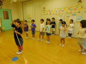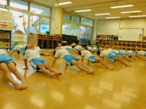 今日は体操指導を行い、キリン組、ライオン組のお友達は